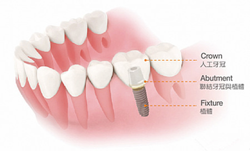 3、个别牙缺失,缺牙区骨质良好,间隙正常,相邻牙排列基本正常的病人,可植入单个种植牙,并进行人工牙冠修复。