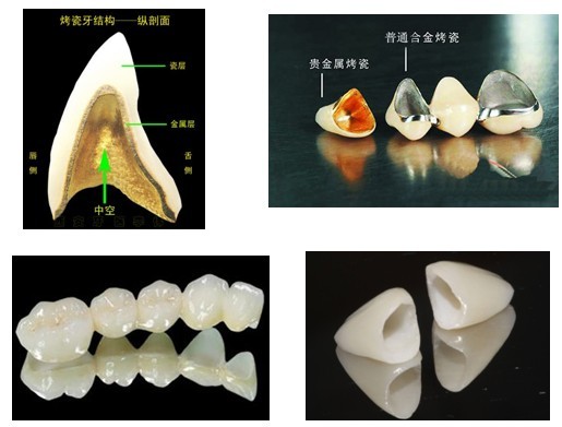 烤瓷冠:主要的内冠为金属,根据材料的不同还可以分为普通金属瓷牙、钛合金瓷牙和贵金属瓷牙等几种,是临床上适用比较广,而且经济适用的一种修复方式。